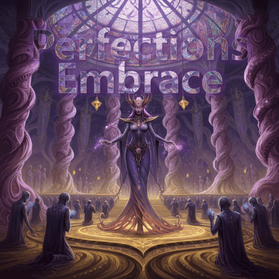 „Perfection’s Embrace“ explores the seductive corruption of Slaanesh through universal themes of obsession, excess, and the pursuit of impossible perfection. Rather than following a specific character’s story, the album presents a thematic journey through the various aspects of Slaanesh’s influence – from the initial whisper of temptation to the hollow victory of achieving perfection at the cost of one’s soul.